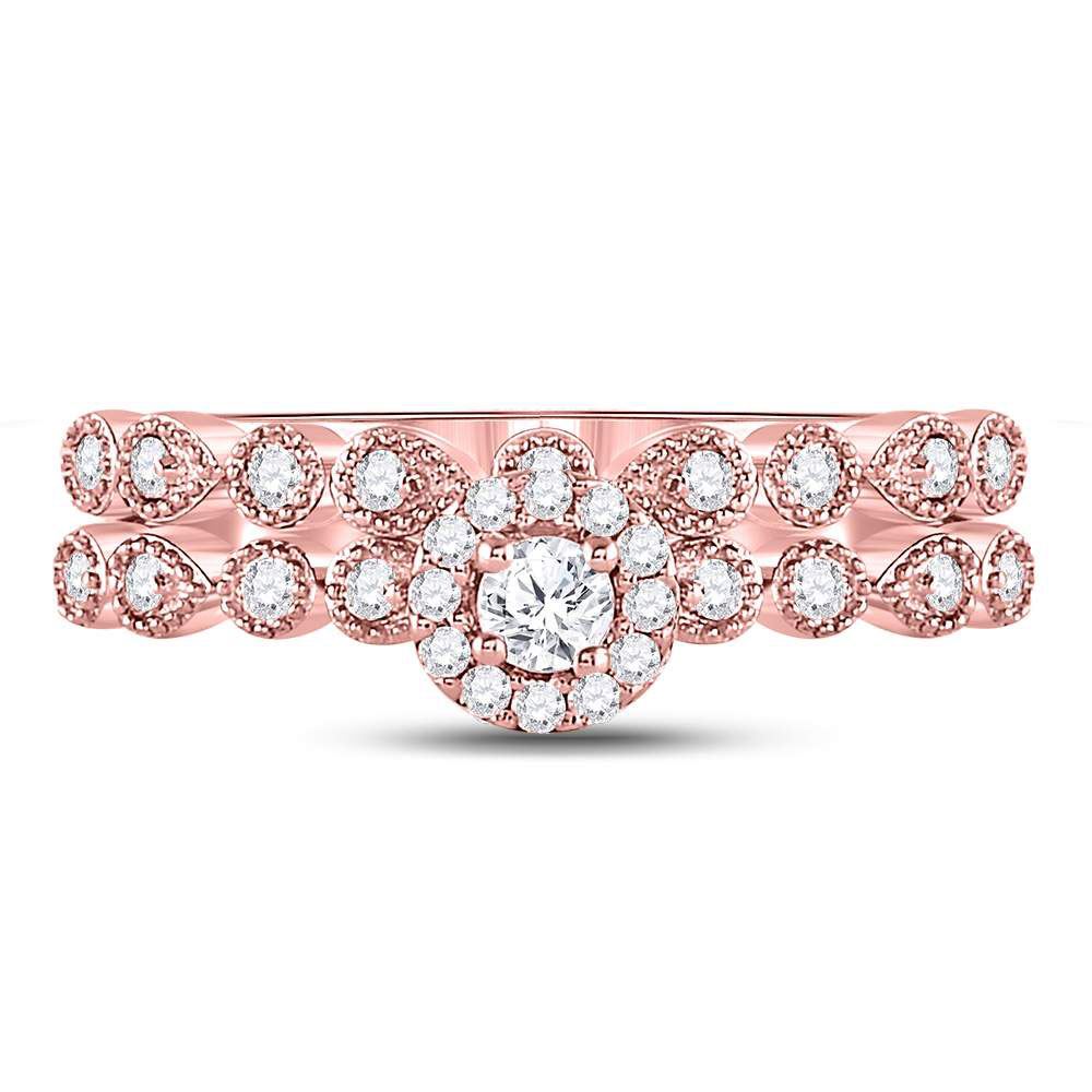 10kt Rose Gold Round Diamond Stackable Bridal Wedding Ring Band Set 1/3 Cttw