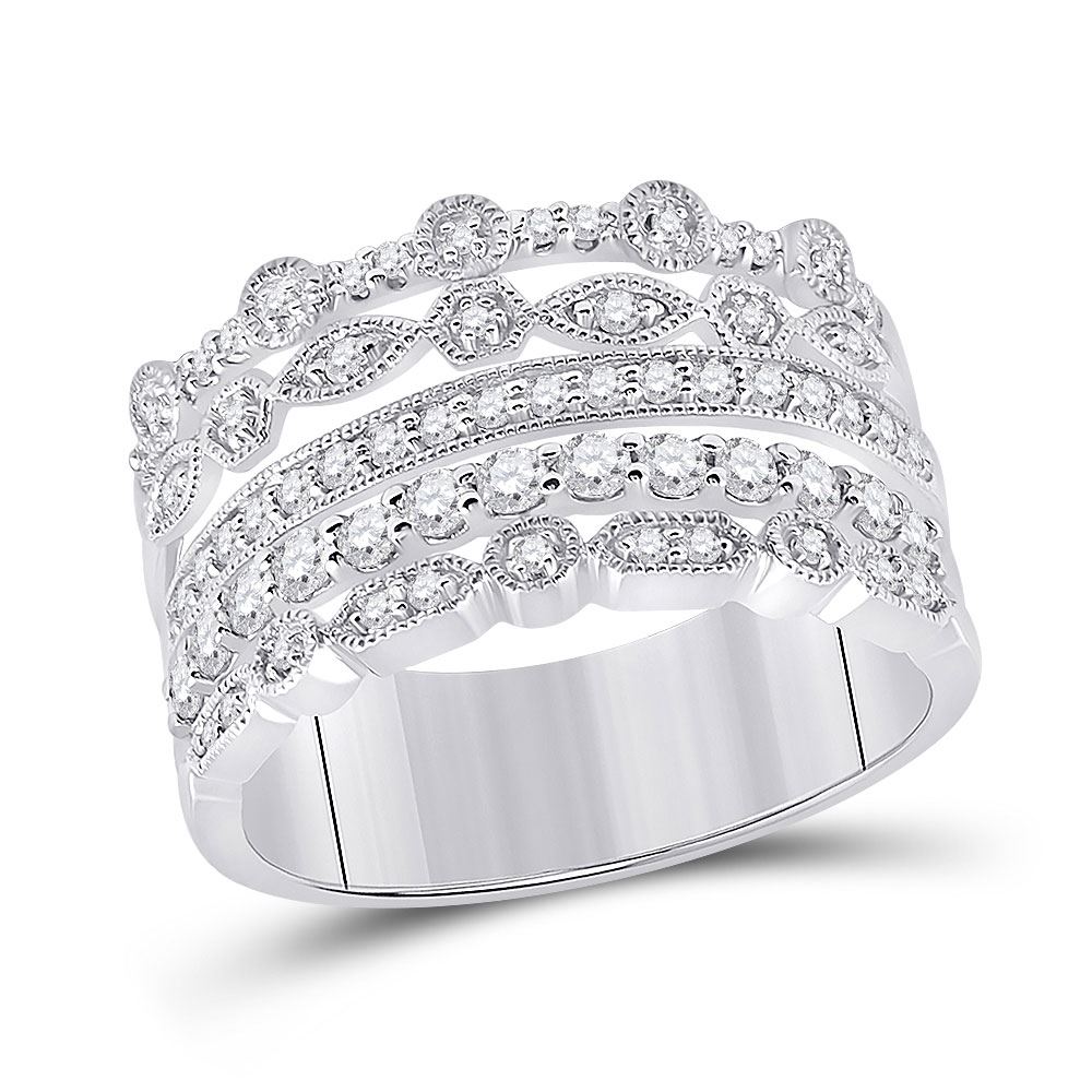 10kt White Gold Womens Round Diamond Stacked Band Ring 1/2 Cttw