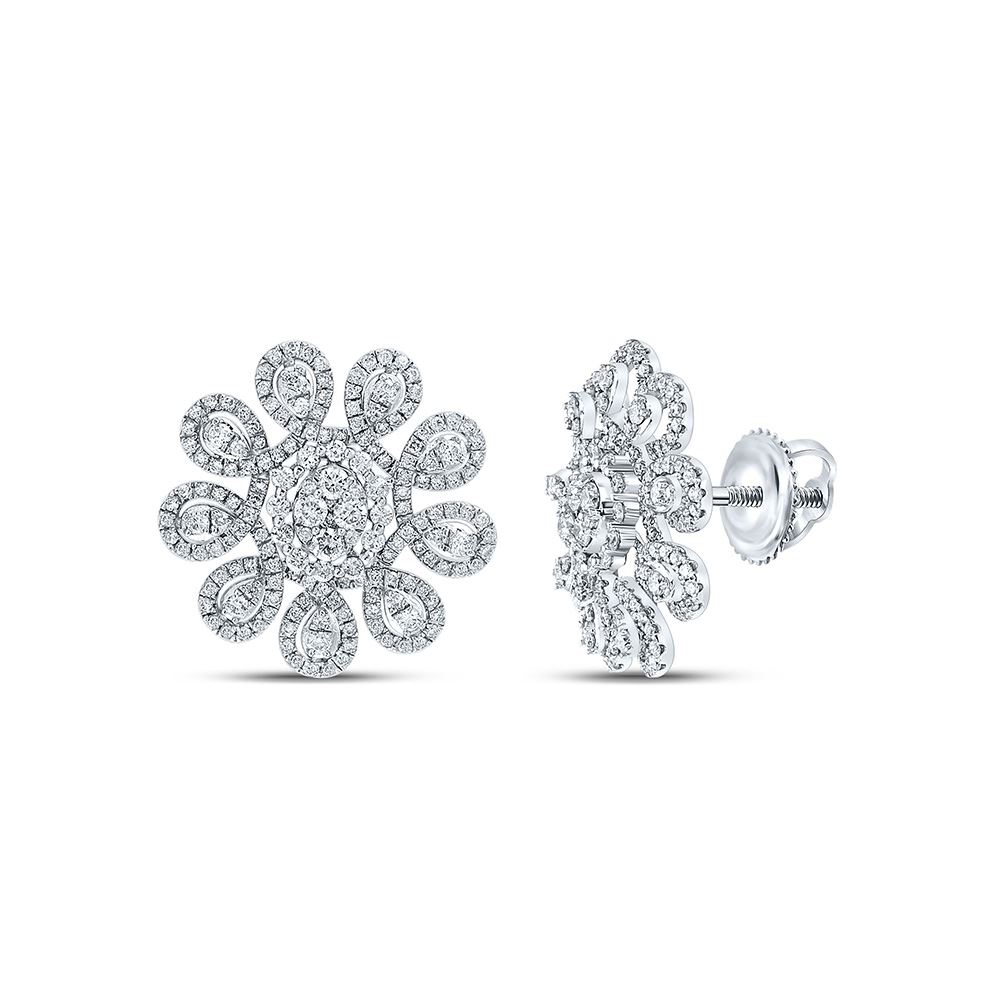 14kt White Gold Womens Round Diamond Starburst Cluster Earrings 1-7/8 Cttw