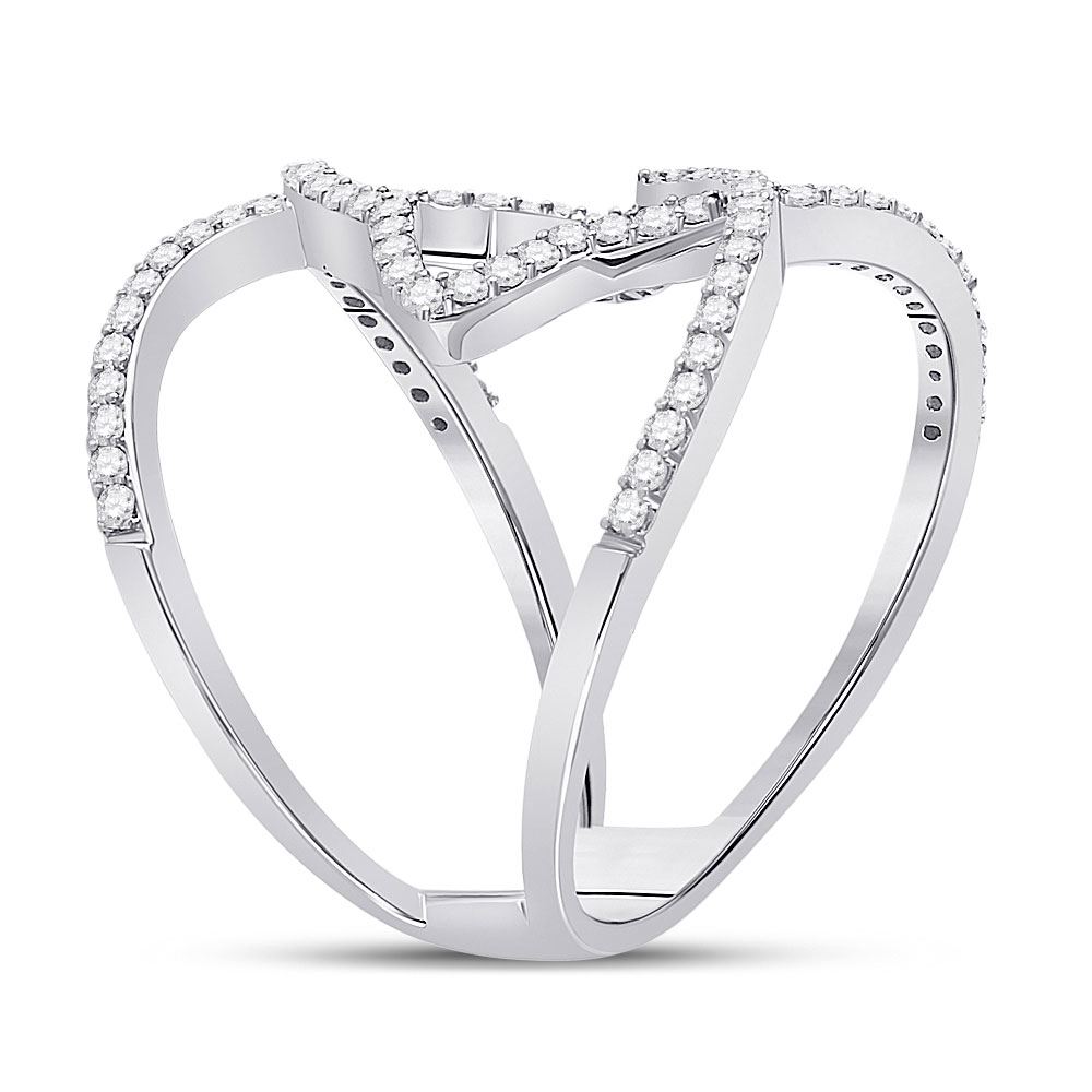 14kt White Gold Womens Round Diamond Starburst Negative Space Ring 1/2 Cttw