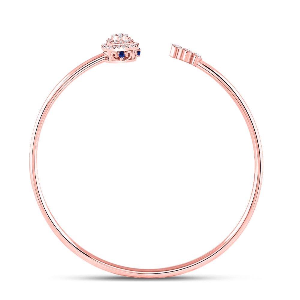 table {border-collapse: collapse; width: 100%; font-size: 1.2em; border: 1px lightgrey solid;} th, td {text-align: left; padding: 5px;} tr:nth-child(odd) {background-color: #efefee;} tr {border-bottom: 1px lightgrey solid;}          Metal Type14kt Rose Gold  Item NumberGDI852648  StyleBanglesCarats Total Weight *1/2 Ct.t.w.Primary Gem TypeDiamondPrimary Gem ShapeRoundPrimary Gem Color / ClarityG-H / I1-I2Gem 2 TypeNatural Blue SapphireGem 2 ShapeRoundGem 2 Color / ClarityBlue / I1-I2Gram Weight5.59 grams (approximately)