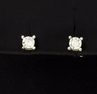 Diamond stud earrings with diamond certificate! Sterling Silver .04ctw diamond stud earrings, H-I color, I clarity. The diamonds are surrounded by diamond cut sterling to give these the look of bigger .20ctw studs. Evaluation Report from International Gemological Institute is included with your earrings. .5g Jewelers Retail: $99.00