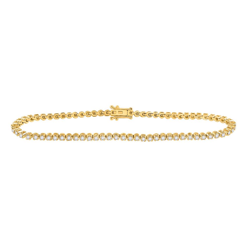 10kt Yellow Gold Womens Round Diamond Studded Tennis Bracelet 1-1/5 Cttw