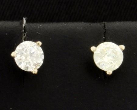 0.45 Carats total weight of brilliant cut round diamonds, clarity I2, color J-K. 14k martini 3 prong settings with 14k white gold friction back earrings. .5g