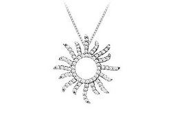 This delightful sun pendant is gracefully from the center circle rays extend with sparkling brilliant-cut round diamonds. Perfectly crafted from 14K white gold & has a total weight (TDW) of 0.40 carat and comes with a standard 16" 14K white gold chain.