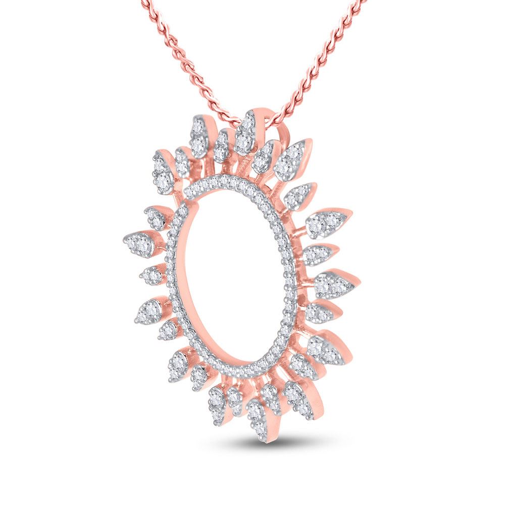 14kt Rose Gold Womens Round Diamond Sunburst Circle Pendant 3/4 Cttw