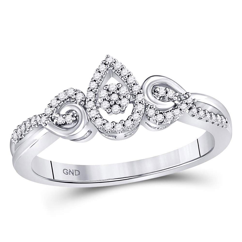 REF-17W3H - SKU: GD128129 ---- Diamond Teardrop Cluster Curl Ring 1/8 Cttw 10kt White Gold