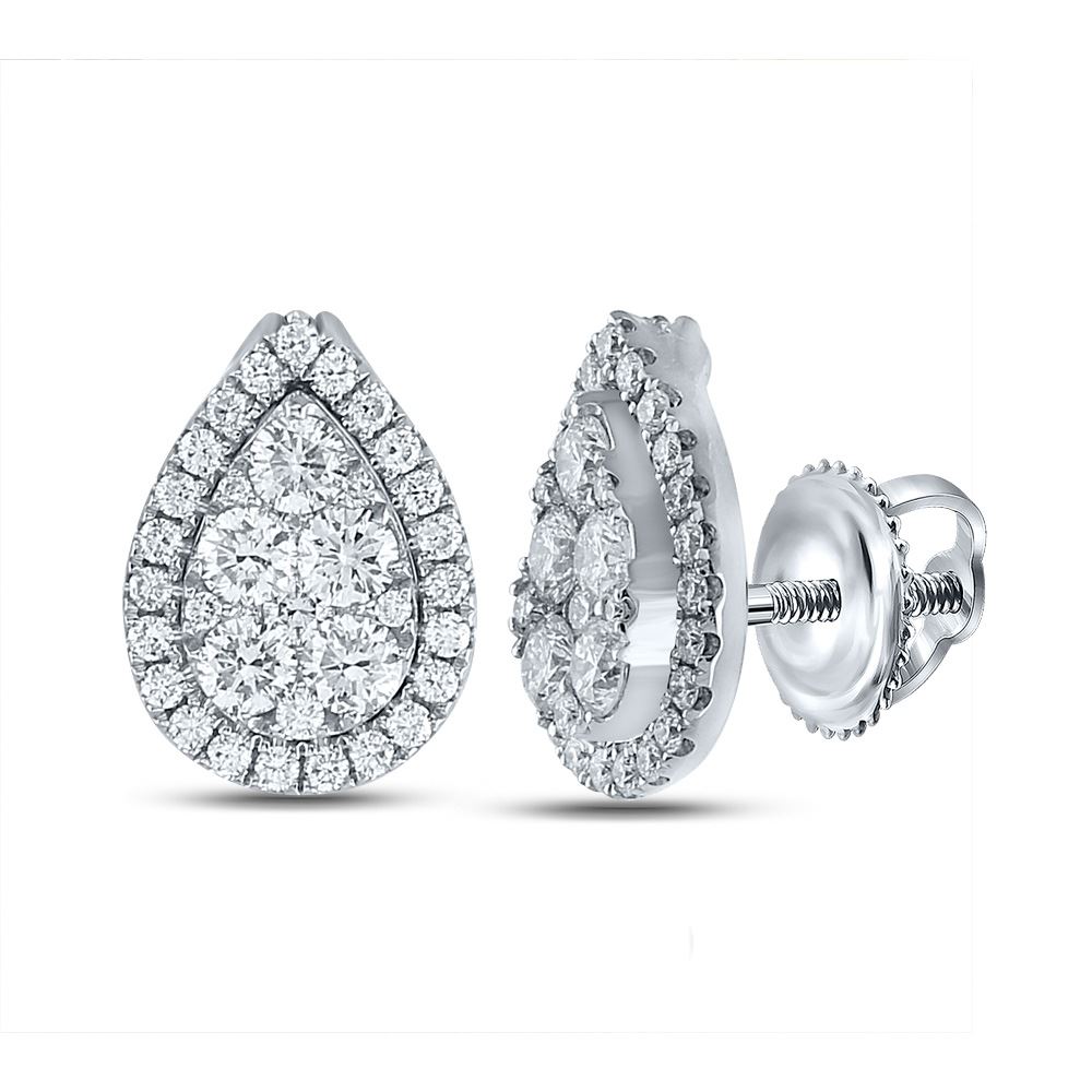 18kt White Gold Womens Round Diamond Teardrop Cluster Earrings 1-1/2 Cttw