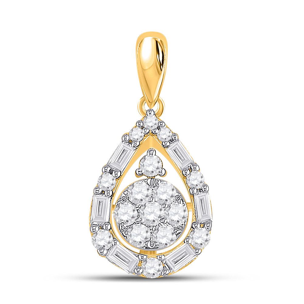14kt Yellow Gold Womens Round Diamond Teardrop Cluster Pendant 1/2 Cttw