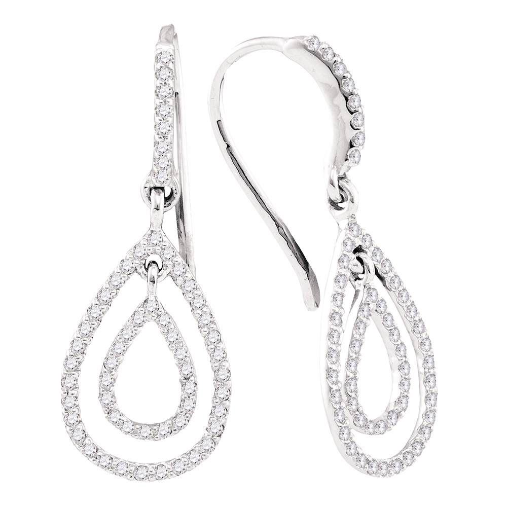 REF-30Y0X - SKU: GD89188 ---- Diamond Teardrop Dangle Earrings 1/2 Cttw 10kt White Gold