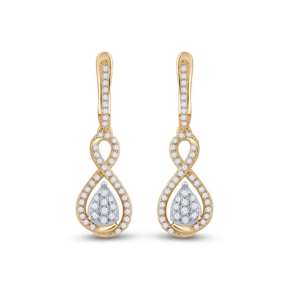 10kt Yellow Gold Womens Round Diamond Teardrop Dangle Earrings 3/8 Cttw