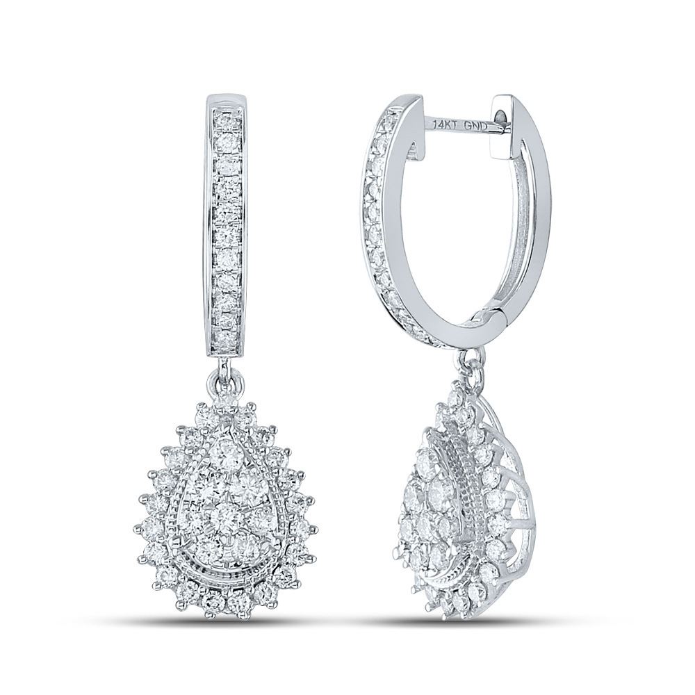14kt White Gold Womens Round Diamond Teardrop Dangle Earrings 7/8 Cttw