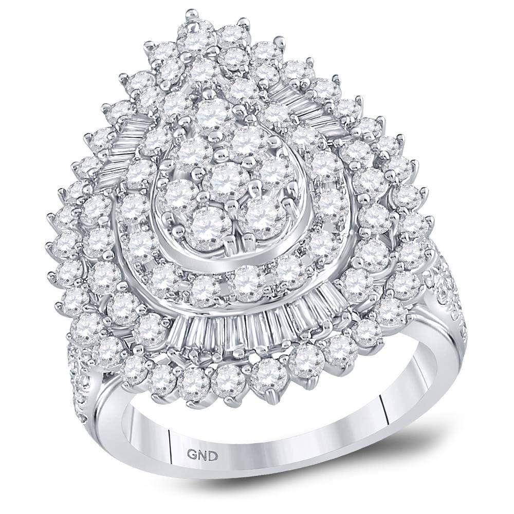 14kt White Gold Womens Round Diamond Teardrop Pear Cluster Ring 3 Cttw