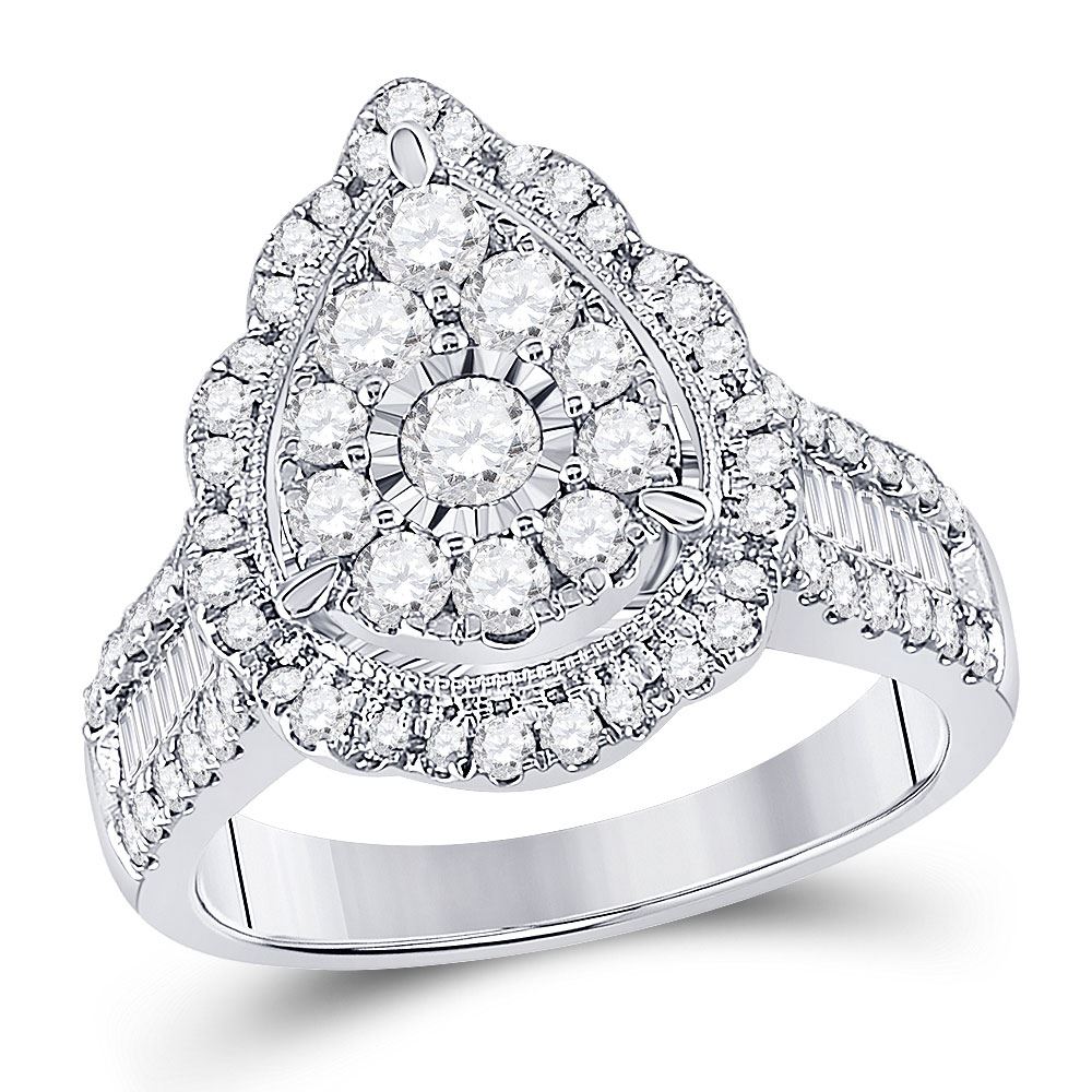 14kt White Gold Womens Round Diamond Teardrop Pear Ring 1-5/8 Cttw