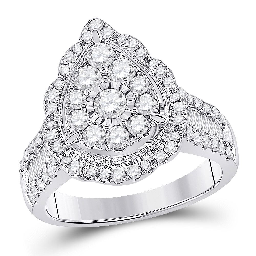 14kt White Gold Womens Round Diamond Teardrop Pear Ring 1-5/8 Cttw