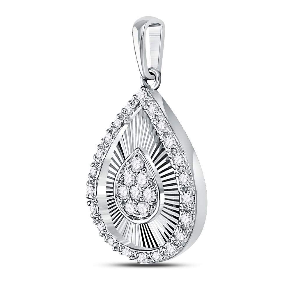 10kt White Gold Womens Round Diamond Teardrop Pendant 1/6 Cttw