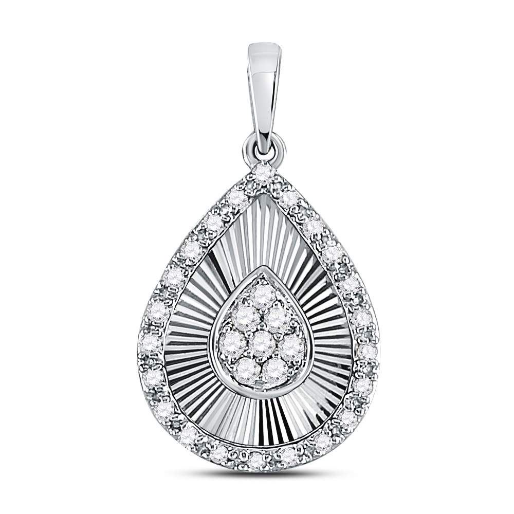 10kt White Gold Womens Round Diamond Teardrop Pendant 1/6 Cttw