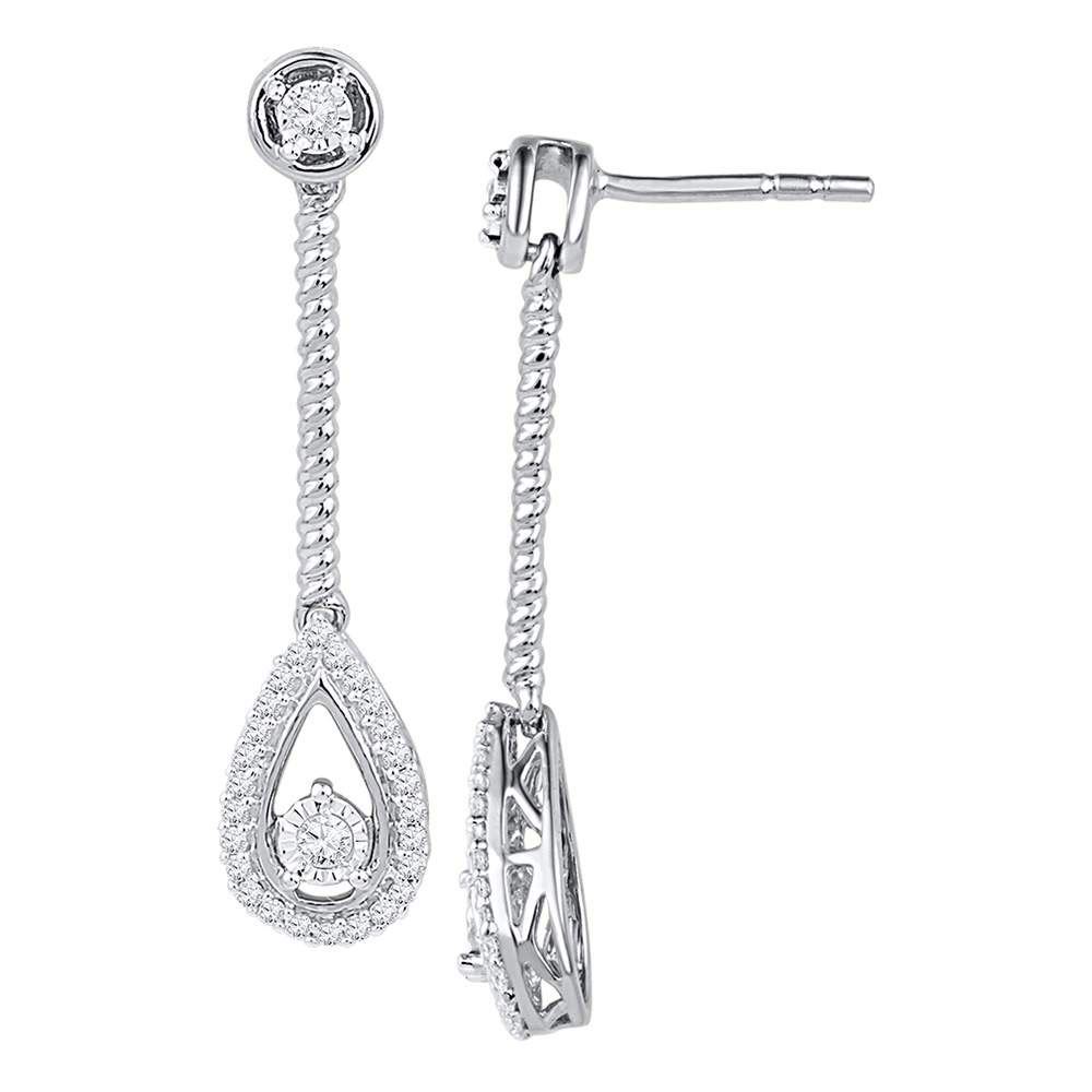 REF-23F6N - SKU: GD108731 ---- Diamond Teardrop Screwback Dangle Earrings 1/4 Cttw 10kt White Gold
