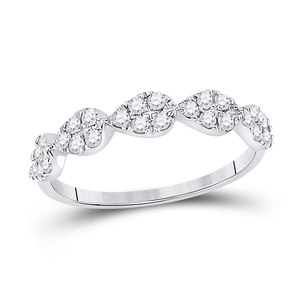 10kt White Gold Womens Round Diamond Teardrop Stackable Band Ring 1/3 Cttw