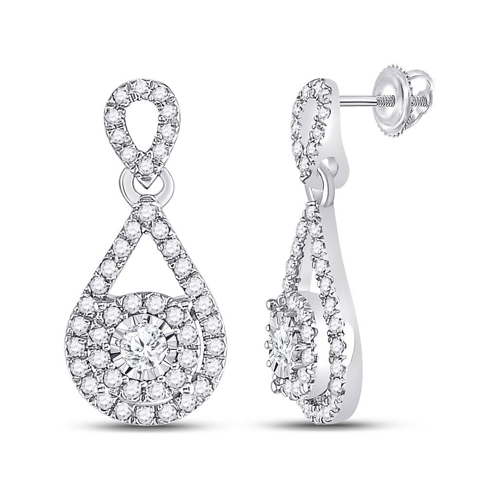 10kt White Gold Womens Round Diamond Teardrop Stud Earrings 1/2 Cttw