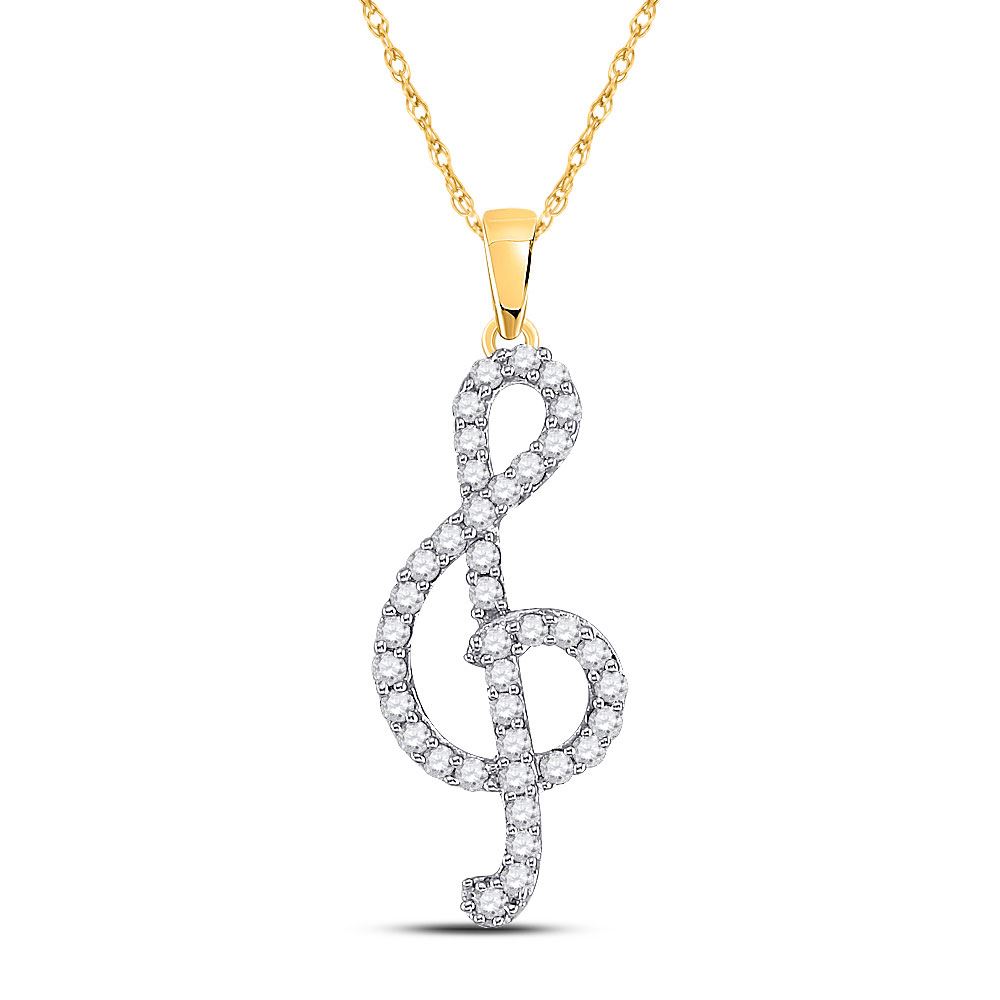 REF-24A5V - SKU: GD101026 ---- Diamond Treble Clef Music Pendant 1/3 Cttw 10kt Yellow Gold