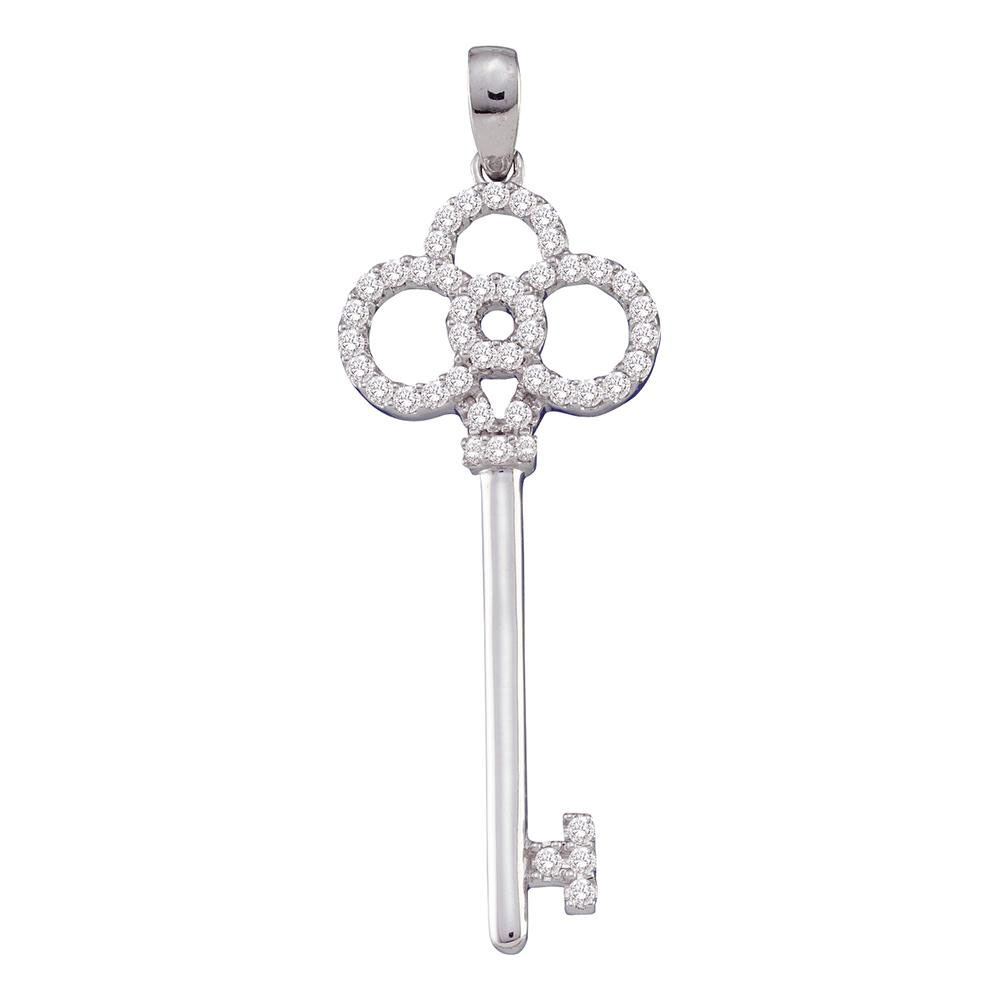 REF-38X2Y - SKU: GD60212 ---- Diamond Trefoil Key Pendant 1/2 Cttw 14kt White Gold