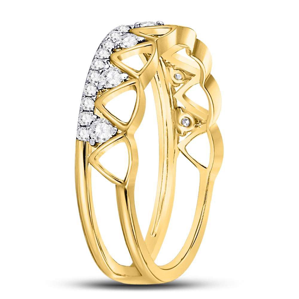 14kt Yellow Gold Womens Round Diamond Triangle Band Ring 1/3 Cttw