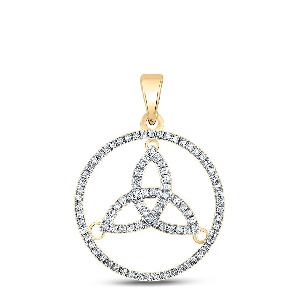10kt Yellow Gold Womens Round Diamond Trinity Triquetra Circle Pendant 1/4 Cttw