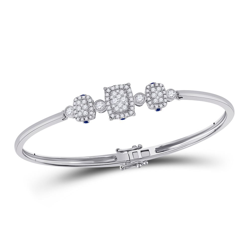 table {border-collapse: collapse; width: 100%; font-size: 1.2em; border: 1px lightgrey solid;} th, td {text-align: left; padding: 5px;} tr:nth-child(odd) {background-color: #efefee;} tr {border-bottom: 1px lightgrey solid;} Metal Type14kt White Gold Item NumberGDI852169 StyleBanglesCarats Total Weight *7/8 Ct.t.w.Primary Gem TypeDiamondPrimary Gem ShapeRoundPrimary Gem Color / ClarityG-H / I1-I2Gem 2 TypeDiamondGem 2 ShapeRoundGem 2 Color / ClarityG-H / I1-I2Gem 3 TypeNatural Blue SapphireGem 3 ShapeRoundGem 3 Color / ClarityBlue / I2-I3Gram Weight11.8 grams (approximately)