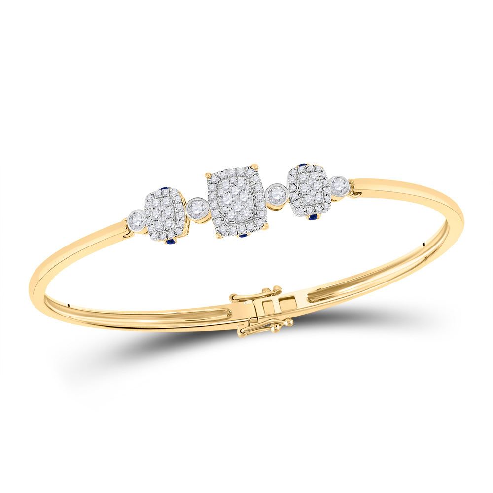 table {border-collapse: collapse; width: 100%; font-size: 1.2em; border: 1px lightgrey solid;} th, td {text-align: left; padding: 5px;} tr:nth-child(odd) {background-color: #efefee;} tr {border-bottom: 1px lightgrey solid;} Metal Type14kt Yellow Gold Item NumberGDI852166 StyleBanglesCarats Total Weight *7/8 Ct.t.w.Primary Gem TypeDiamondPrimary Gem ShapeRoundPrimary Gem Color / ClarityG-H / I1-I2Gem 2 TypeDiamondGem 2 ShapeRoundGem 2 Color / ClarityG-H / I1-I2Gem 3 TypeNatural Blue SapphireGem 3 ShapeRoundGem 3 Color / ClarityBlue / I2-I3Gram Weight11.8 grams (approximately)