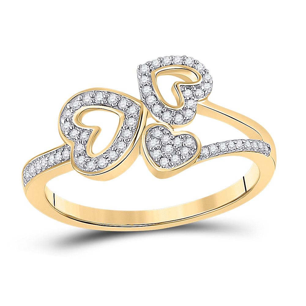 10kt Yellow Gold Womens Round Diamond Triple Heart Ring 1/6 Cttw