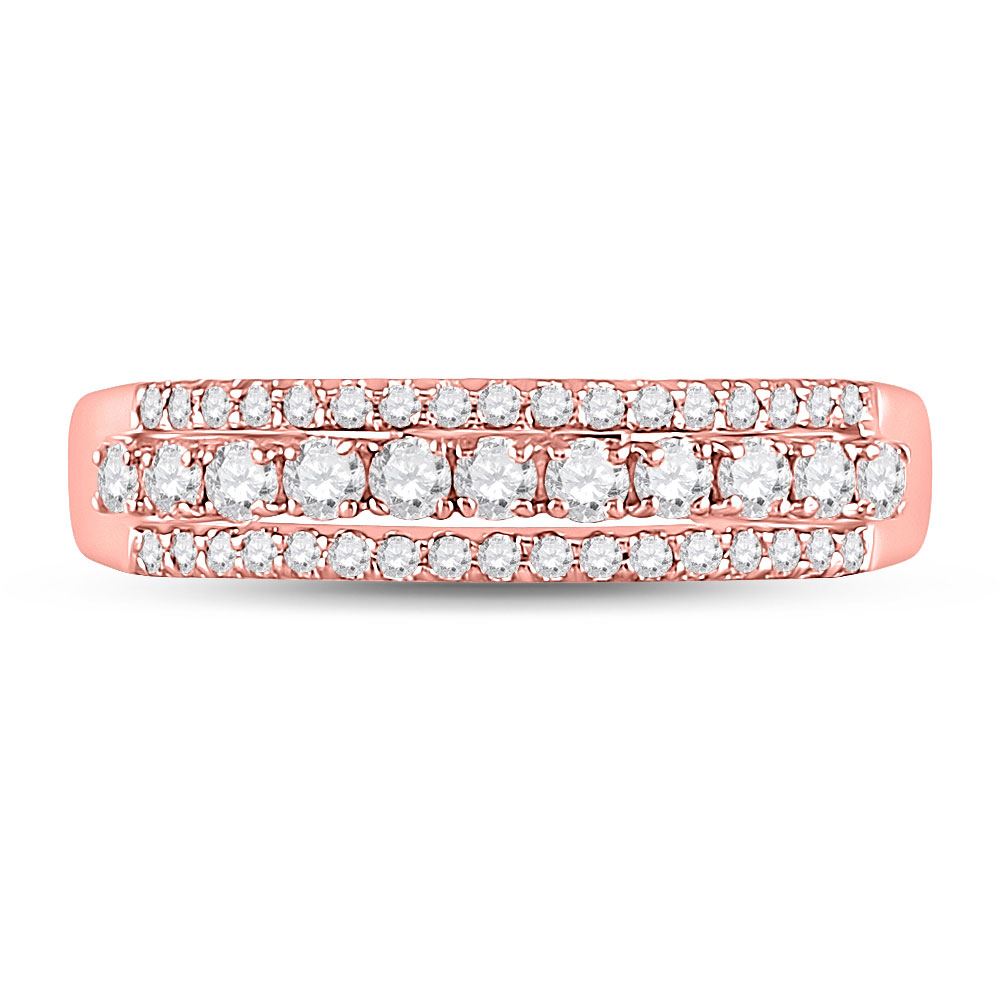 14kt Rose Gold Womens Round Diamond Triple Row Band Ring 1/2 Cttw