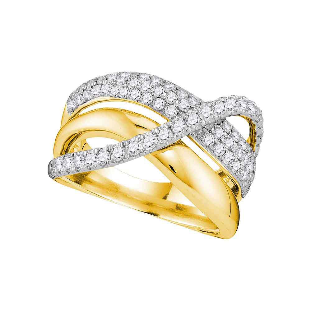 REF-99F1N - SKU: GD107492 ---- Diamond Triple Row Crossover Strand Band 1.00 Cttw 14kt Yellow Gold