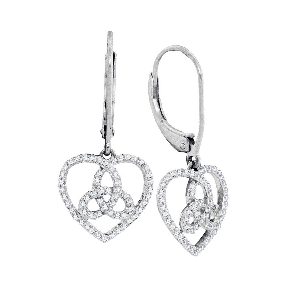 REF-20M0X - SKU: GD93930 ---- Diamond Triquetra Heart Trinity Dangle Earrings 1/5 Cttw 10kt White Gold