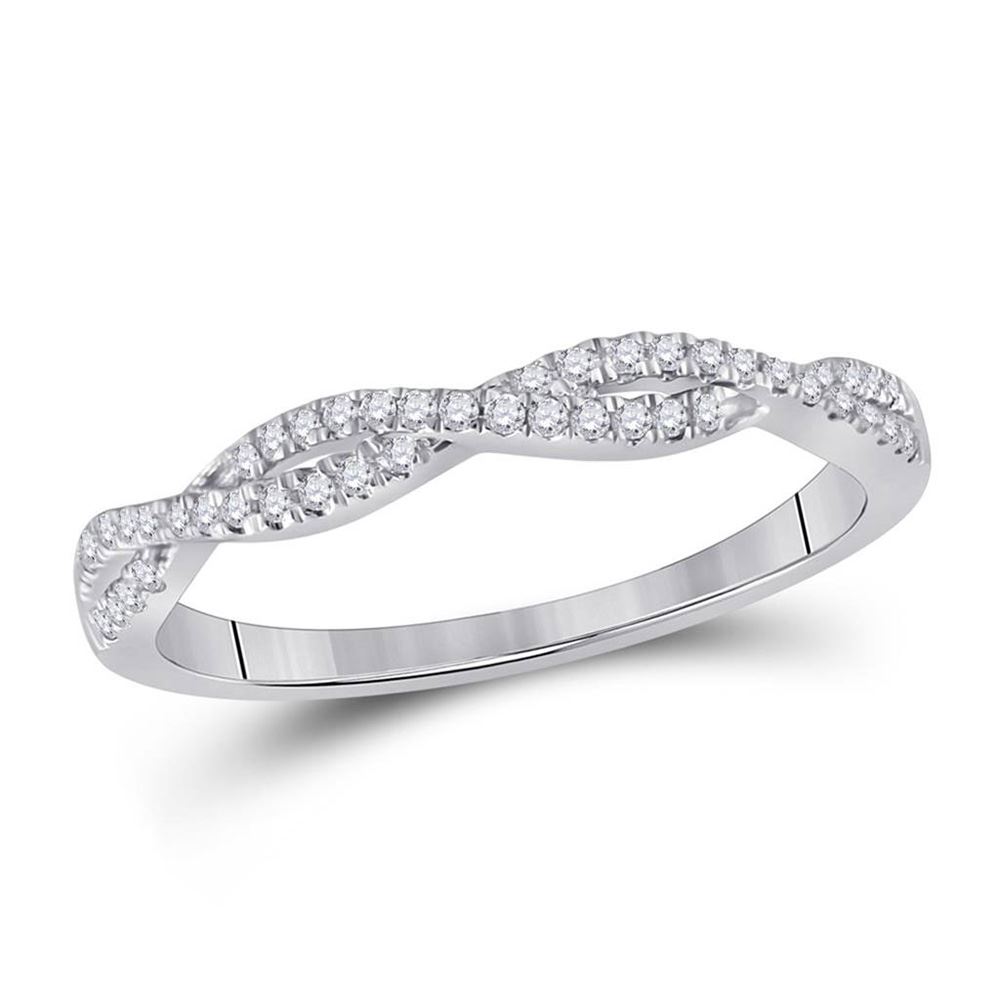 14kt White Gold Womens Round Diamond Twist Stackable Band Ring 1/6 Cttw