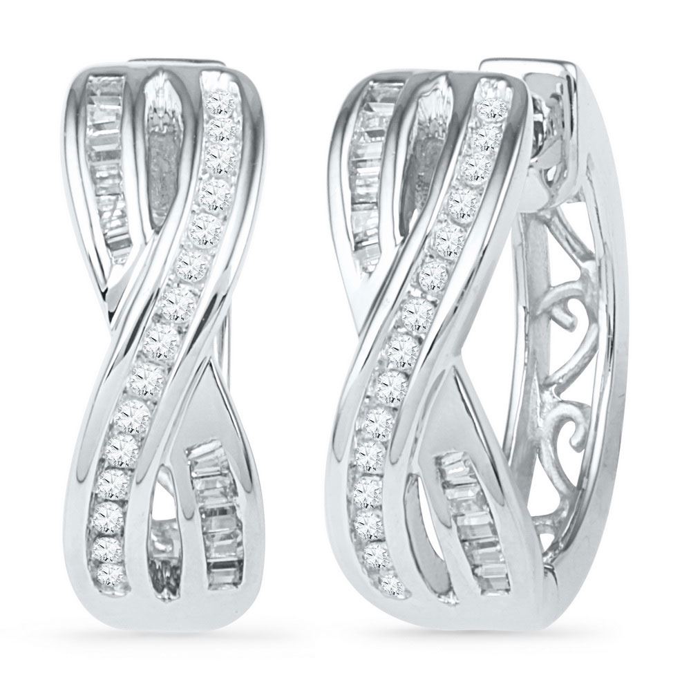 REF-22G7M - SKU: GD101804 ---- Diamond Two Row Crossover Hoop Earrings 1/4 Cttw 10kt White Gold