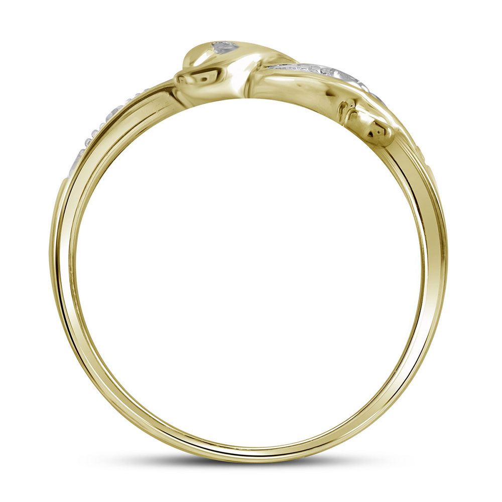 10kt Yellow Gold Womens Round Diamond Two-tone Dolphin Fish Animal Ring 1/20 Cttw
