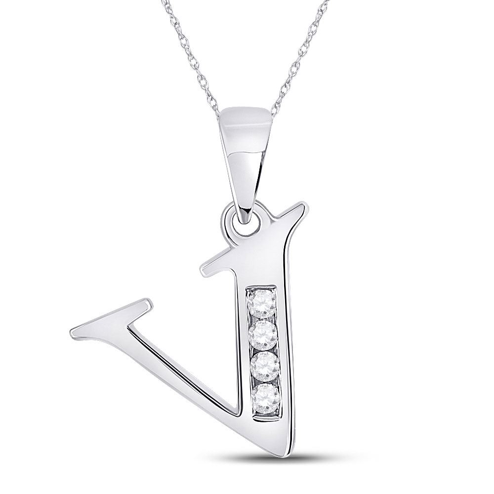 10kt White Gold Womens Round Diamond V Initial Letter Pendant 1/20 Cttw