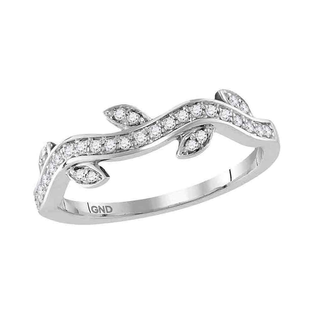 REF-20V0A - SKU: GD118458 ---- Diamond Vine Floral Stackable Band Ring 1/6 Cttw 10kt White Gold