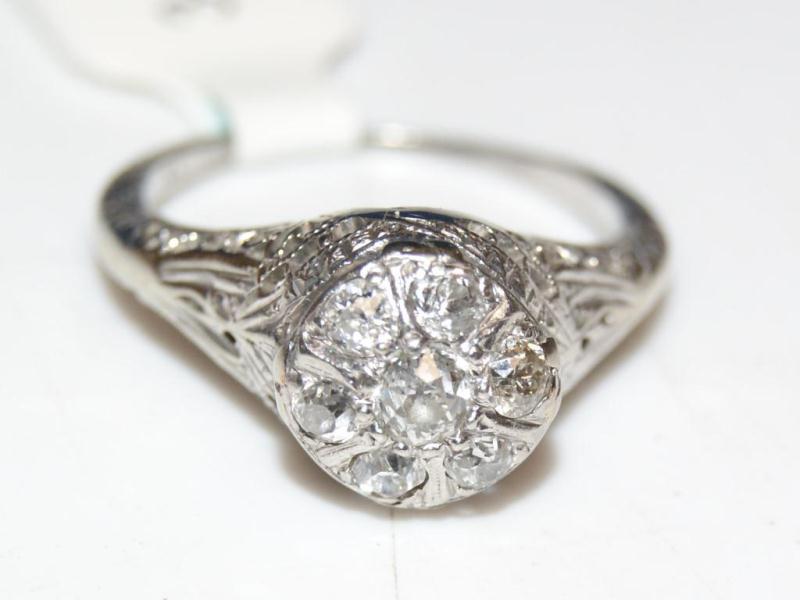 Retail Value $6,490 18Kt White Gold -- Diamond Vintage Hand Carved Cluster Ladies Ring --
