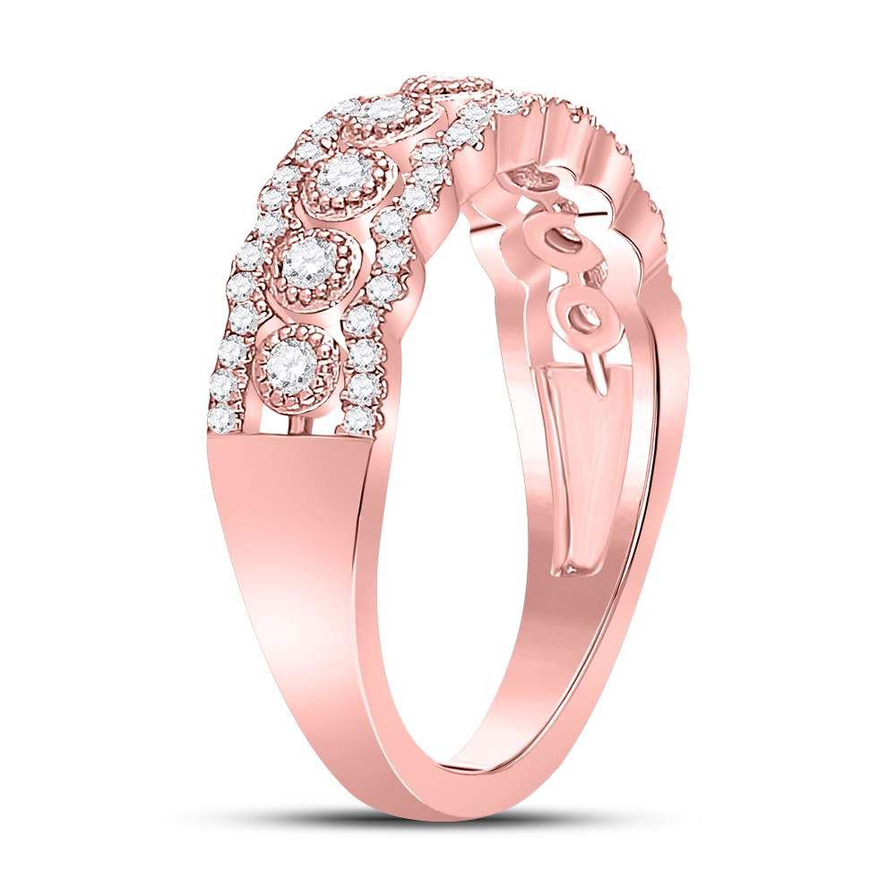 10kt Rose Gold Womens Round Diamond Vintage-inspired Band Ring 1/3 Cttw