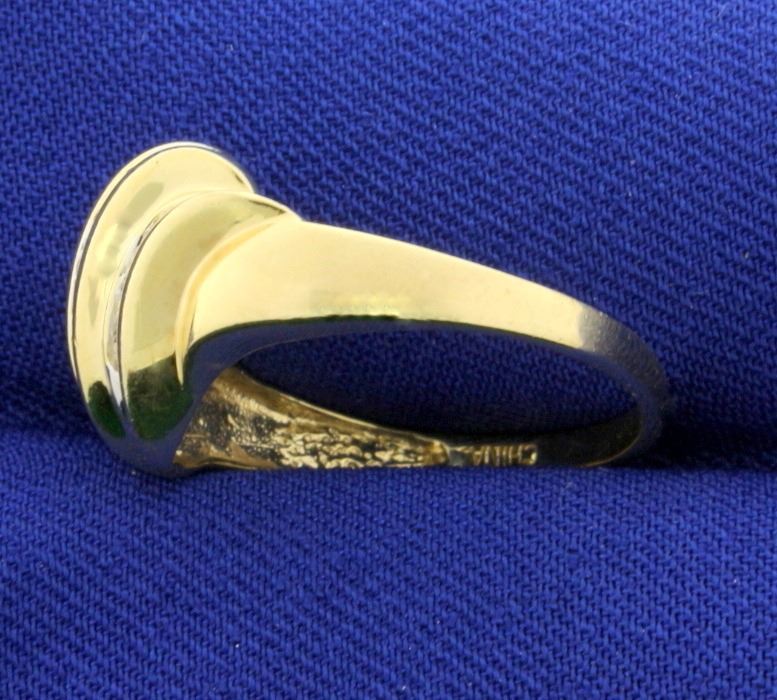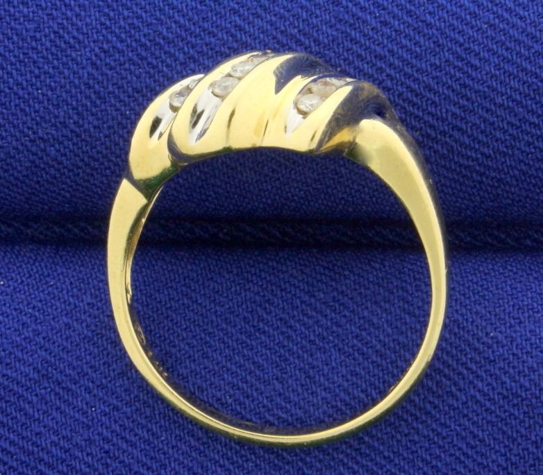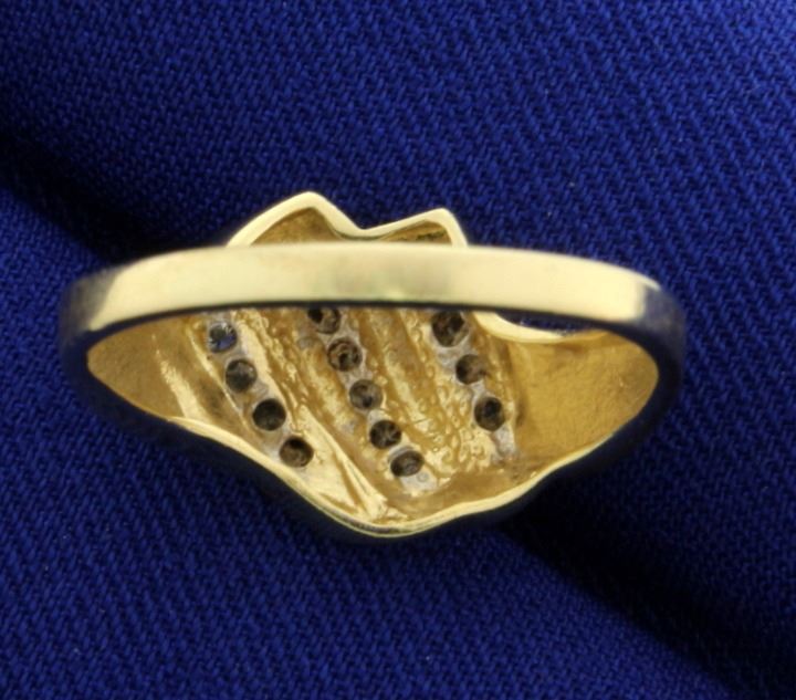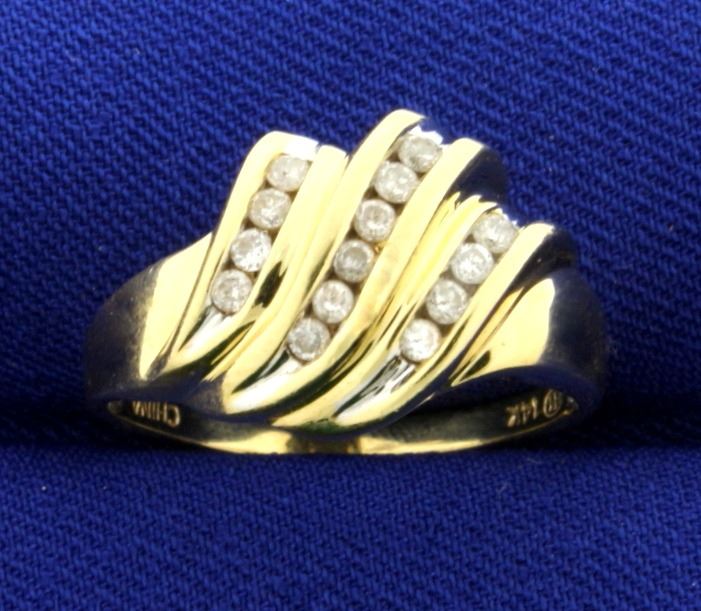 In 14K Yellow Gold. Contains fourteen round .02ct high quality Diamonds, SI clarity/H color. Size 8 1/2. 3.9g