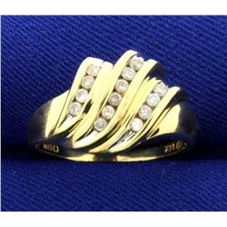 In 14K Yellow Gold. Contains fourteen round .02ct high quality Diamonds, SI clarity/H color. Size 8 1/2. 3.9g