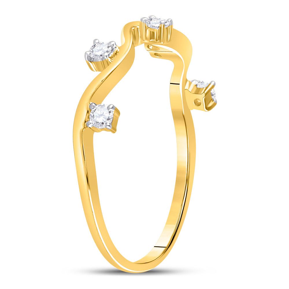 10kt Yellow Gold Womens Round Diamond Wave Stackable Band Ring 1/8 Cttw