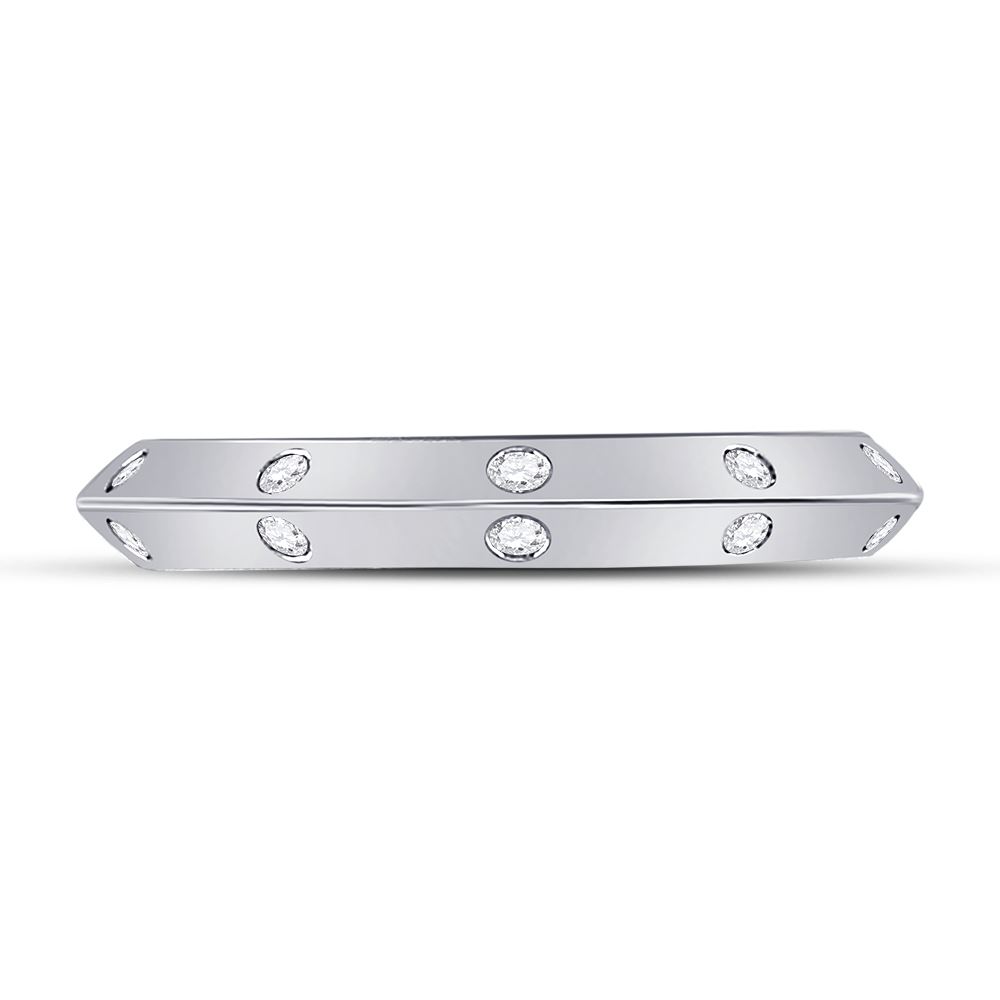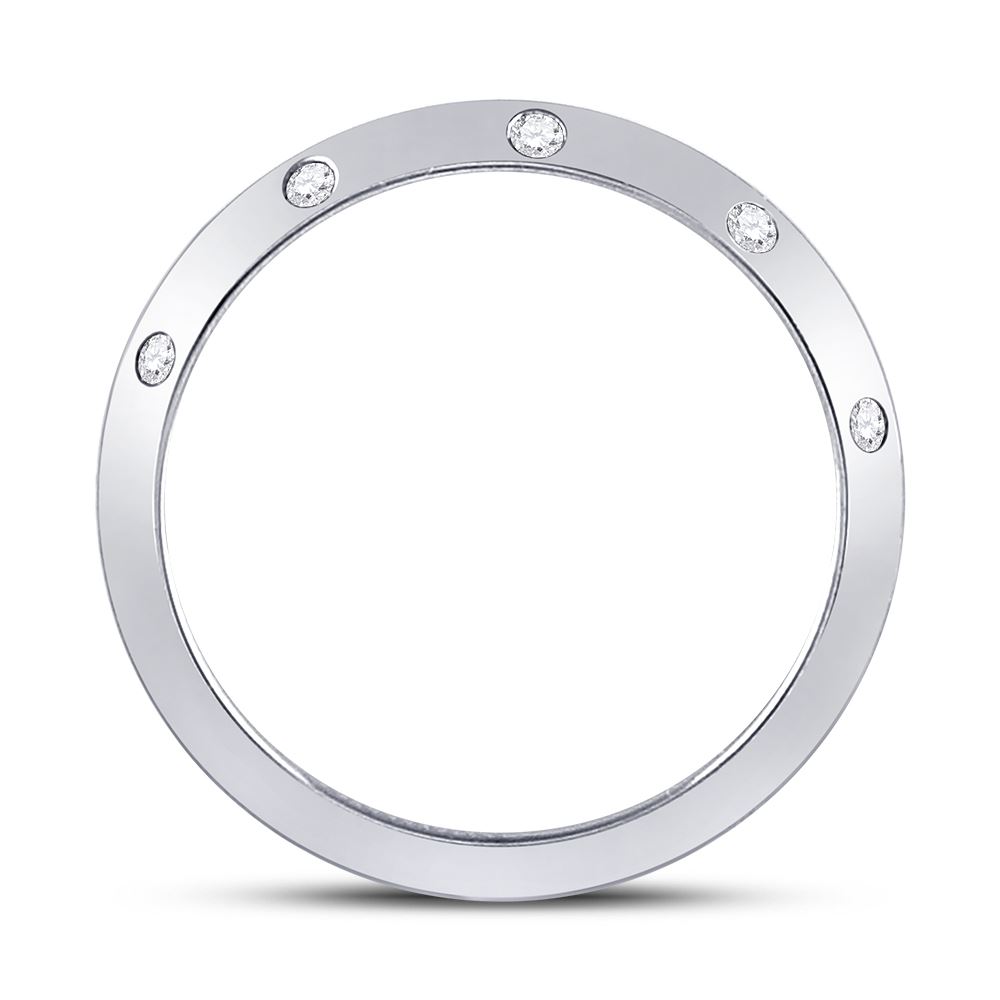 14kt White Gold Womens Round Diamond Wedding Machine-Set Band 1/10 Cttw