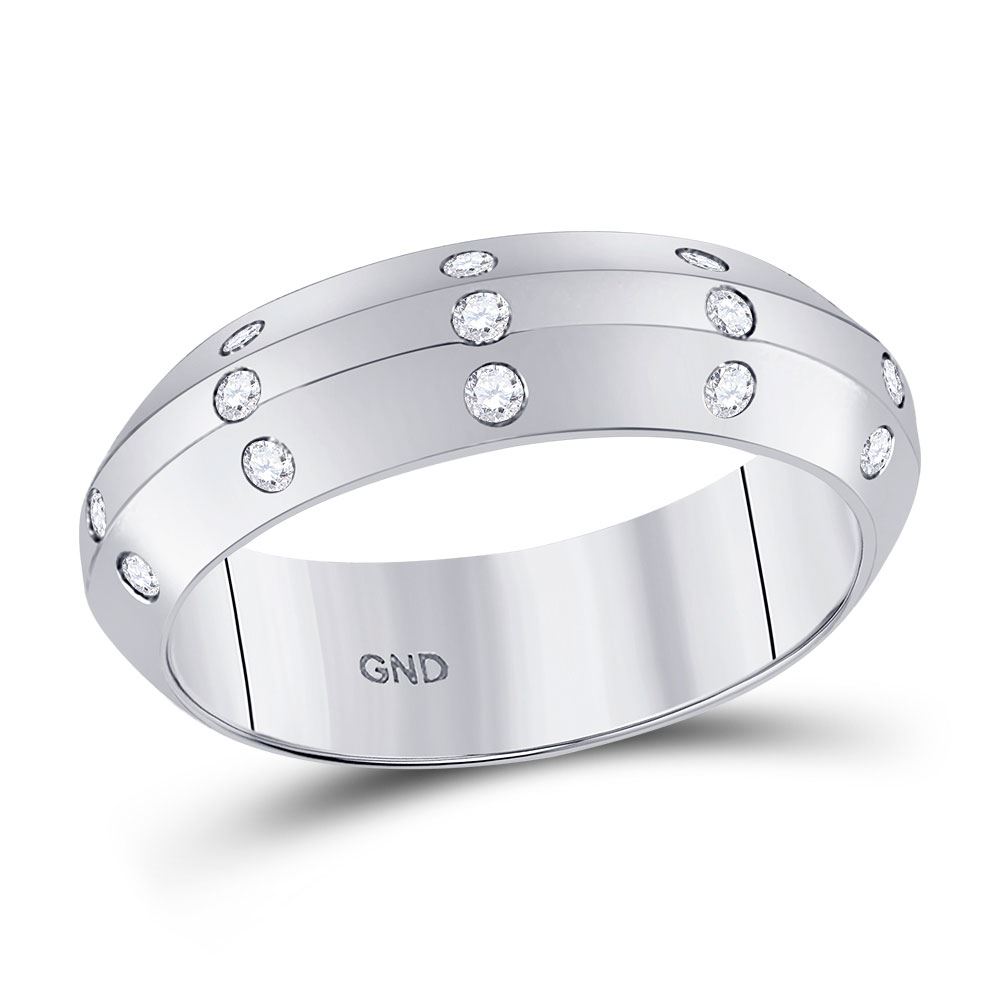 14kt White Gold Womens Round Diamond Wedding Machine-Set Band 1/6 Cttw