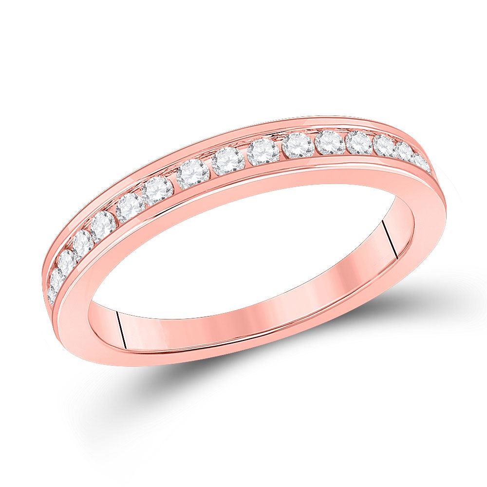14kt Rose Gold Womens Round Diamond Wedding Single Row Band 1/3 Cttw