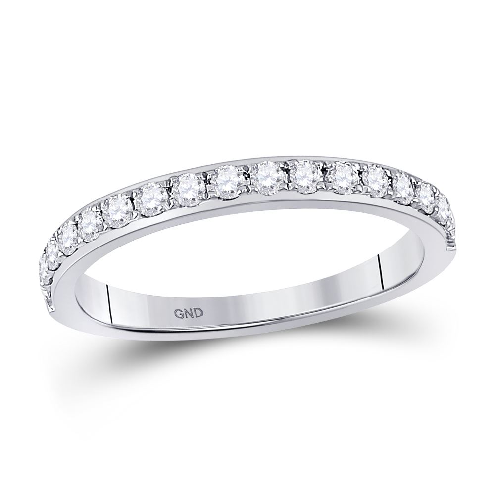 14kt White Gold Womens Round Diamond Wedding Single Row Band 1/3 Cttw