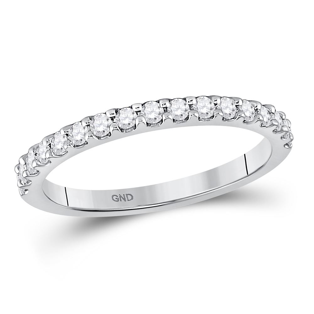 14kt White Gold Womens Round Diamond Wedding Single Row Band 1/3 Cttw