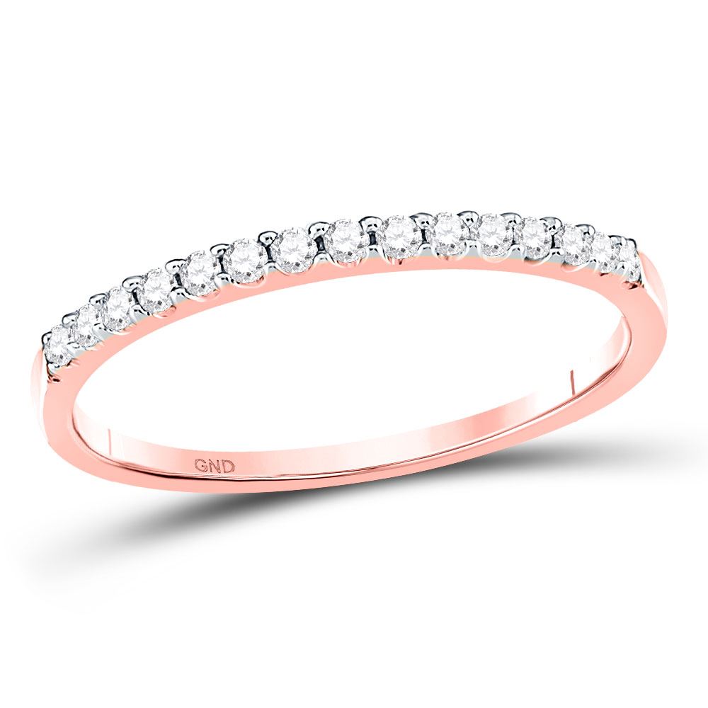 14kt Rose Gold Womens Round Diamond Wedding Single Row Band 1/6 Cttw